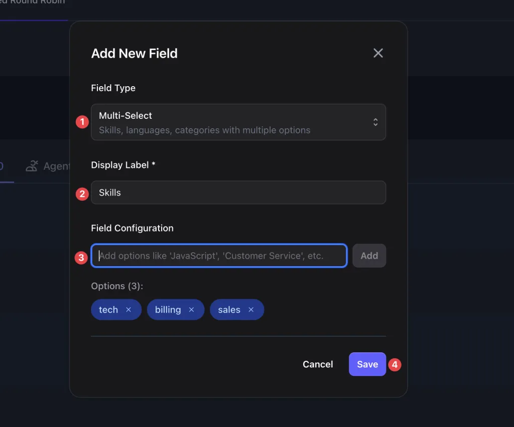 - Multi Select – Used when you want to route a request based on skills, language, or category.
