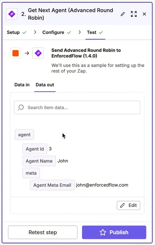 In Zapier, look for the EnforcedFlow App when setting up an action.